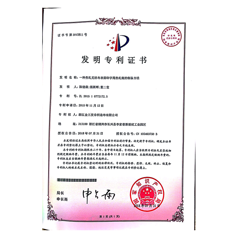 Rangaithe 1 i dtionscal nonwovens na Síne Barr 10 ar feadh 12 bliana as a chéile