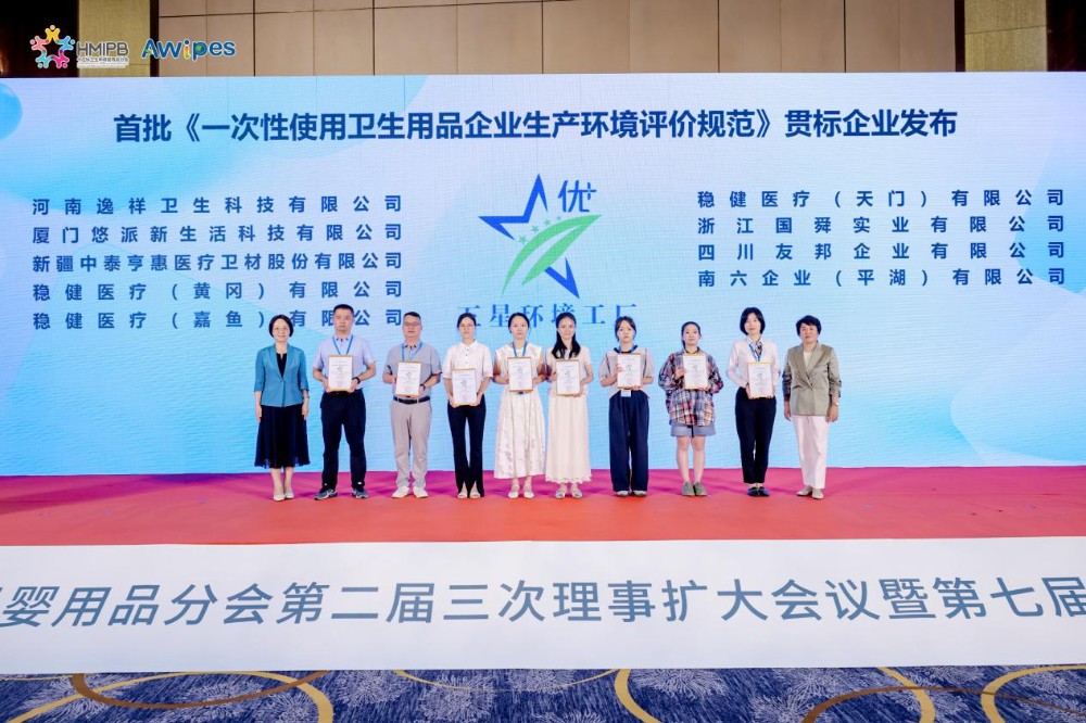 Ag an gcruinniú, fógraíodh freisin liosta na gcéad bhaisc d'fhiontair a chuireann an "Sonraíocht Meastóireachta Timpeallachta Táirgthe d'Fhiontair Táirgí Sláintíochta Indiúscartha" i bhfeidhm. Tuigtear go ndéanann an caighdeán grúpa "Sonraíocht Meastóireachta Timpeallachta Táirgthe d'Fhiontair Táirgí Sláintíochta Indiúscartha" meastóireacht chórasach ar na gnéithe lárnacha mar shuíomhanna monarchan, táscairí sláinteachais chomhshaoil táirgí agus táirgeachta, agus cumais rialaithe táirgeachta, agus roinntear na torthaí meastóireachta i monarchana comhshaoil cúig réalta agus monarchana comhshaoil cúig réalta den scoth de réir an scóir, ag díriú ar an tionscal a threorú chun rialú timpeallachta táirgthe a neartú, leibhéal bainistíochta sláinteachais an phobail a fheabhsú, bunús táirgí indiúscartha a fheabhsú.