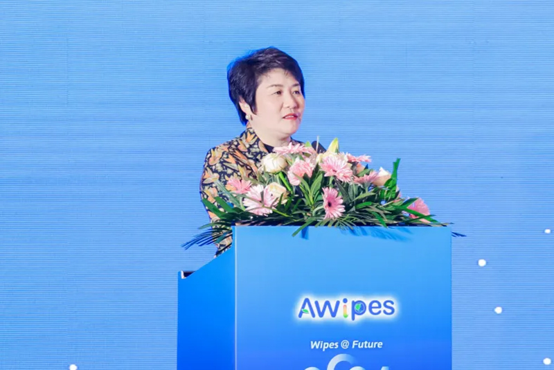 "Is obair chórasach fadtéarmach é forbairt inbhuanaithe thionscal na n-ábhar sláintíochta nonwoven, a éilíonn gníomhaíocht chomhpháirteach agus freagracht shóisialta ag go leor páirtithe." Ag díriú ar an téama "Forbairt Inbhuanaithe Ábhair Sláintíochta Nonwoven na Síne", rinne Li Guimei, Uachtarán Chumann Tionscail na Síne, anailís ar an bhforbhreathnú forbartha, forbairt nuálaíoch agus ionchais todhchaí thionscal nonwovens agus táirgí sláintíochta na Síne, a shórtáil an cosán forbartha inbhuanaithe de ábhair nonwoven wiping, agus mionléiriú ar nuálaíocht agus forbairt thionscal táirgí nonwovens agus sláintíochta na Síne ó ghnéithe na n-amhábhar glas, teicneolaíocht agus teicneolaíocht táirgthe glas, agus táirgí glasa. Tugadh isteach iniúchadh ar fhorbairt inbhuanaithe an tionscail ó ghnéithe na tógála ardán, caighdeáin ábhartha, córas forbartha glas i réimse na nonwovens, deimhniú "bhith-dhíghrádaithe" agus "nite", agus cód inrianaitheachta cáilíochta. Dúirt Li Guimei go leanfaidh scála an mhargaidh ag leathnú sa todhchaí, agus is treocht nua sa tionscal é saibhriú leanúnach na bhfo-ranna; Beidh déantúsaíocht ghlas ina fhórsa tábhachtach a mbeidh tionchar aige ar fhorbairt agus ar chlaochlú an tionscail; Is iad brandáil, éagsúlú agus forbairt ghairmiúil treochtaí forbartha an tionscail; Bhí nuálaíocht eolaíoch agus teicneolaíochta i gcónaí mar phríomhthéama agus fórsa tiomána tábhachtach d'fhorbairt an tionscail.