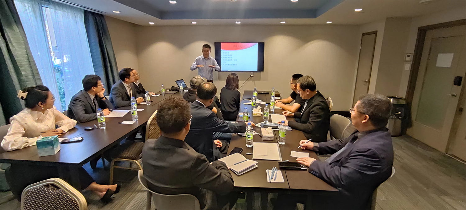 I Montreal, rinne an toscaireacht taighde ar chuideachta Cheanada Tiandingfeng agus bhí plé agus malartuithe acu le hoifigigh ábhartha na cuideachta. Thug Sun Xiangjie, bainisteoir margaíochta Tiandingfeng Company, agus Xiang Feng, an cathaoirleach, cúlra infheistíocht thar lear na cuideachta agus a staid infheistíochta i gCeanada. Roinn siad go mion freisin na buntáistí agus na míbhuntáistí a bhaineann le hinfheistiú i Meiriceá Thuaidh agus chuir siad moltaí ar fáil d'fhiontair na Síne chun infheistíocht a dhéanamh thar lear.